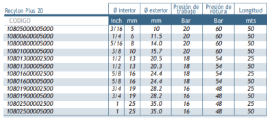 Elaborado con PVC 100% virgen con compuesto de caucho de acrilo nitrilo resistente a los hidrocarburos. Interior y exterior en color negro resistente a los rayos UV. Refuerzo de fibra poliamídica en espiral y longitudinal que le confiere gran resistencia a la rotura por presión y elongación. Superficie interna calibrada. Elevada flexibilidad y fácil manejo. Libre de cadmio y plomo. Resistente a los agentes atmosféricos y a numerosos productos químicos (consultar tabla).